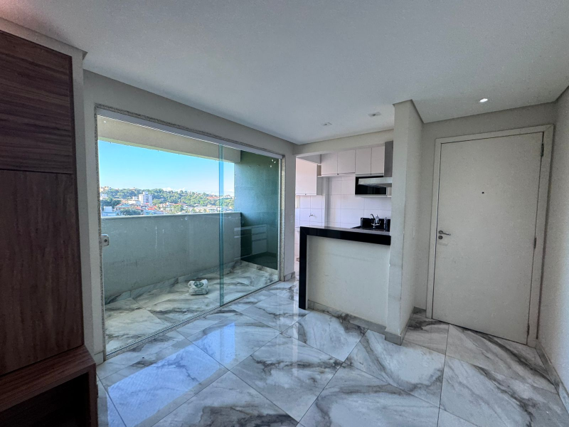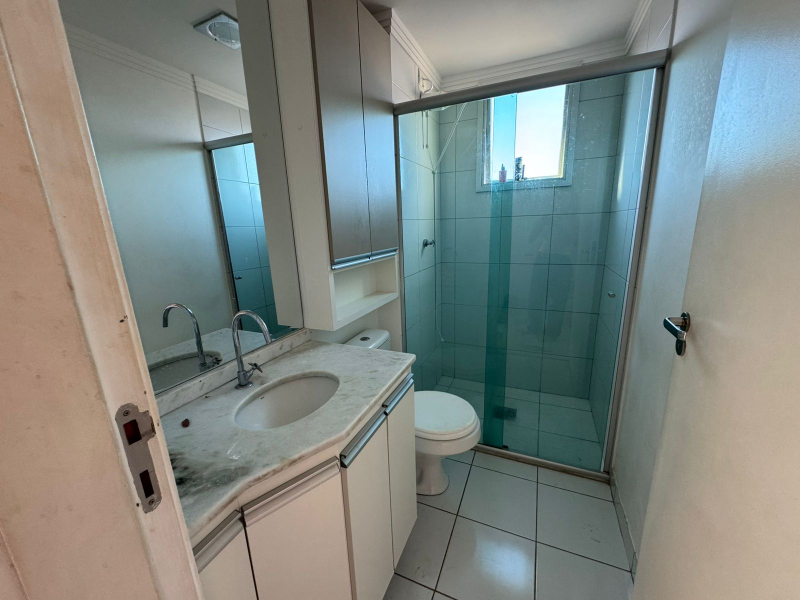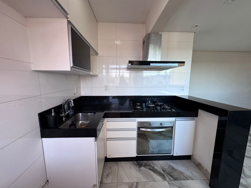 A cozinha conta com armários planejados, oferecendo mais organização e funcionalidade no dia a dia. O apartamento também dispõe de banheiro social e ambientes bem distribuídos.